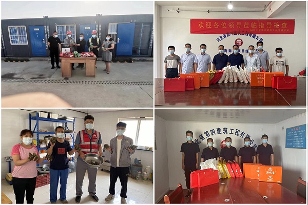 端午节前夕,五分公司、七分公司、八分公司组织包粽子活动。各单位餐厅提前准备包粽子原材料,组织职工一起动手包粽子,过程中大家热情高涨,整个餐厅萦绕着欢声笑语、飘溢着诱人的粽香。五分公司还用职工们包的粽子就近慰问了退休老职工、空巢老人等特殊群体,老人们边吃边感谢。七分公司组织机关职工缝香囊、编五色手链,制作完成后由工会将大家的手工河北四建蜜粽、咸鸭蛋等慰问品送给项目职工,向他们送去节日祝福。