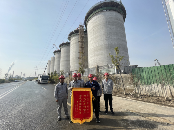 申克瑞在赠送锦旗时表示:“项目工期紧、任务重,项目人员为圆满完成任务加班加点,高质量的完成施工任务,为你们点赞。”感谢信中,业主对项目提前完成了六个筒仓的施工任务给予充分肯定。锦旗和感谢信体现了业主对项目部的高度认可,展现了项目管理团队强大的组织管理能力以及四建人在困难面前勇于担当、拼搏奋进的精神风貌,彰显了公司的品牌形象。