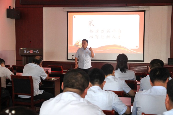 6月12日下午,公司党委2023-2024年度“优秀党员创新工作室”评比竞赛在四楼培训中心举行。公司党委副书记、纪委书记、工会主席李怀生,党委常委、副总经理刘金河出席本次竞赛并讲话。此次竞赛共有来自9个分公司的9个“党员创新工作室”参与。经过激烈的角逐,总分排名前三名的七分公司张克俭“党员创新工作室”、三分公司李云“党员创新工作室”、一分公司张涛“党员创新工作室”荣获公司“优秀党员创新工作室”称号。