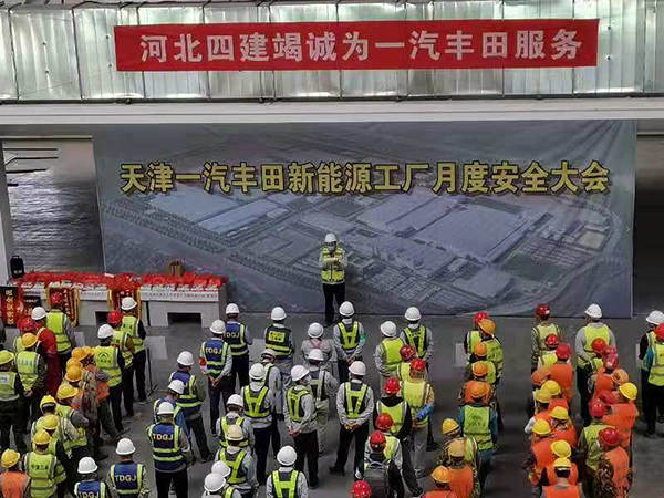 此次月度安全大会在天津一汽树脂车间项目部施工现场召开和项目部所获得的两项荣誉,充分体现了河北四建的管理实力、过硬的工作作风和一汽丰田对河北四建安全管理工作的认可。事实再次证明,河北四建是一支能打硬仗,敢打硬仗,敢于拼搏的队伍。(天津分公司)