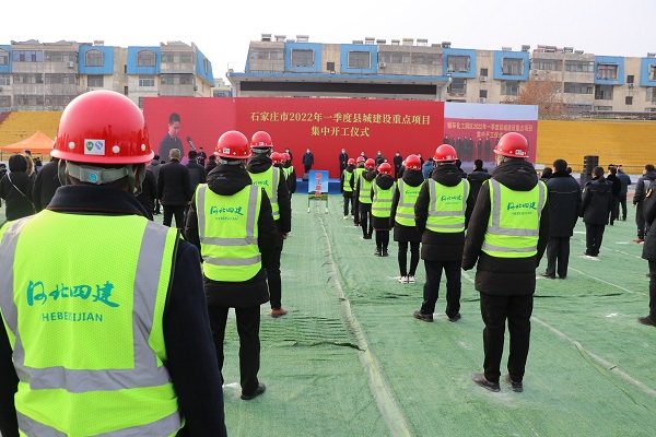 217日上午9点,石家庄市2022年一季度县城建设重点项目集中开工仪式在鹿泉区举行,主会场设在三分公司承建的鹿泉区体育场地下停车场项目现场。石家庄市副市长郑巍,市住建局、鹿泉区领导和区直属部门以及施工单位等参加,藁城、栾城、正定等区县分会场通过云视频与现场进行互动。市政府副秘书长郭彦军主持开工仪式。